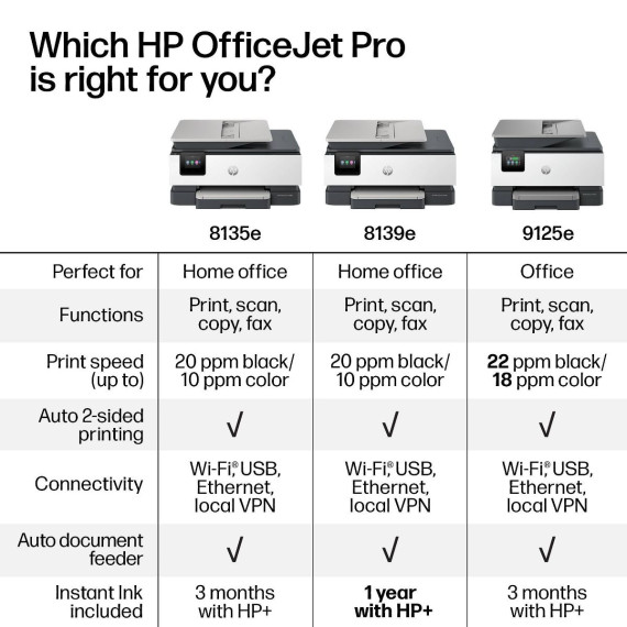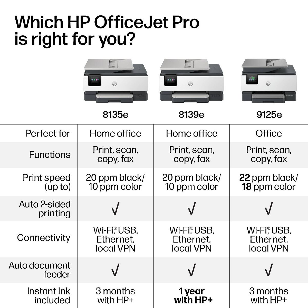 FROM AMERICA'S MOST TRUSTED PRINTER BRAND: The OfficeJet Pro 8135e is perfect for home offices printing professional-quality color documents like business documents, reports, presentations and flyers. Print speeds up to 10 ppm color, 20 ppm black.