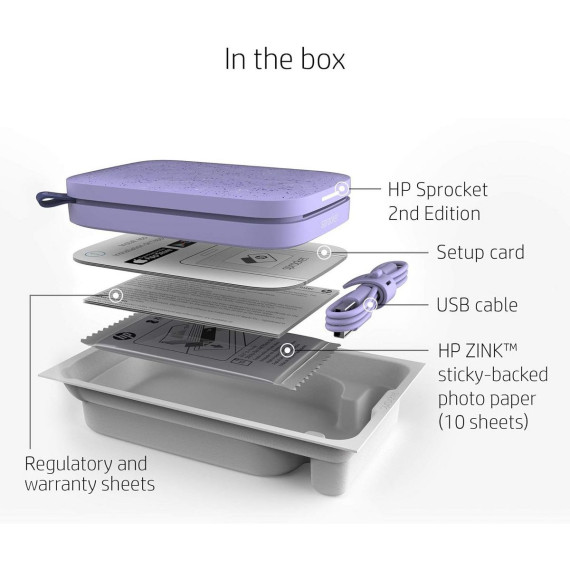 HP Sprocket 2x3" Instant Smartphone Photo Printer 75 Sheets Bundle, Wireless Portable Printer - Purple