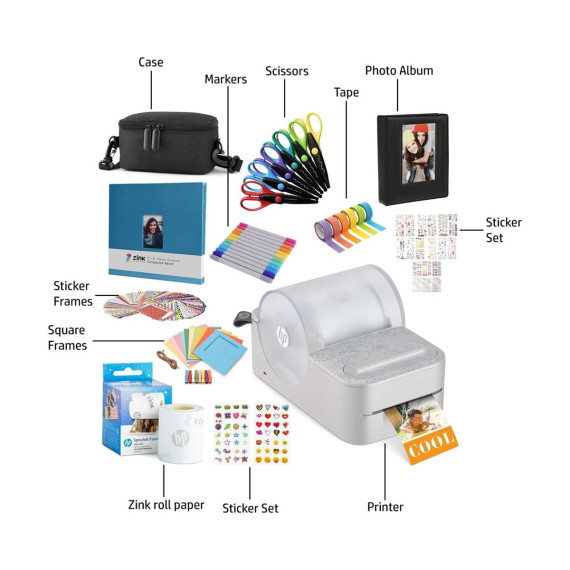 This HP Portable Printer & Label Maker lets you instantly print your favorite photo projects, labels, photobooth strips, and more, from 0.5” to 9” long on 2” wide sticky-backed paper! Take the Label Maker Printer anywhere for fun, on-the-go creativity. With the compatible HP Sprocket Photo Printer Panorama app, you can easily customize your creations with filters, and more before printing from your iOS or Android. Beautiful creations print instantly without the need for expensive ink and toners with ZINK Zero Ink technology. Your sticky-backed prints come out smudge-proof, water-resistant, and tear-resistant, so you can use your designs to add a fun, personalized flair anywhere and know they’ll last. Just connect to the app, get set up, and let the good times and good crafts roll. Add an HP Mini Photo Printer & Label Maker Machine to your cart today!