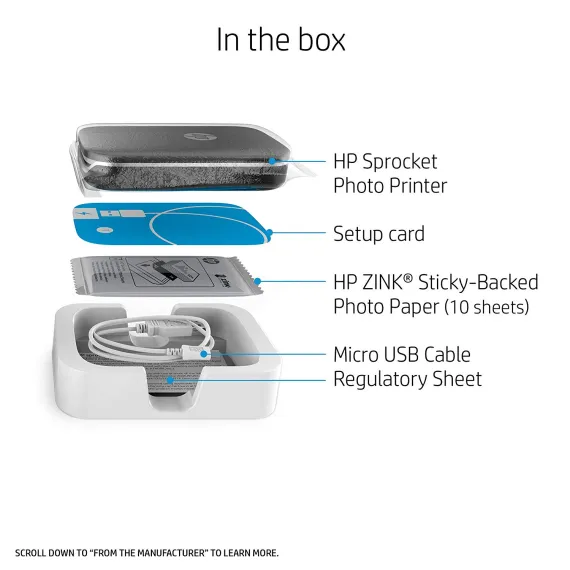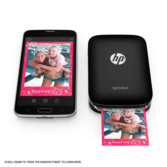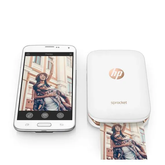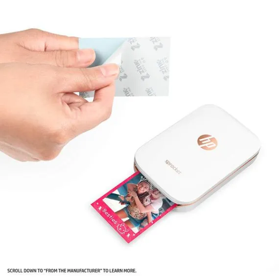 HP Sprocket Plus Instant Photo Printer, Print 30% Larger Photos on 2.3x3.4 Sticky-Backed Paper – White (2FR85A)