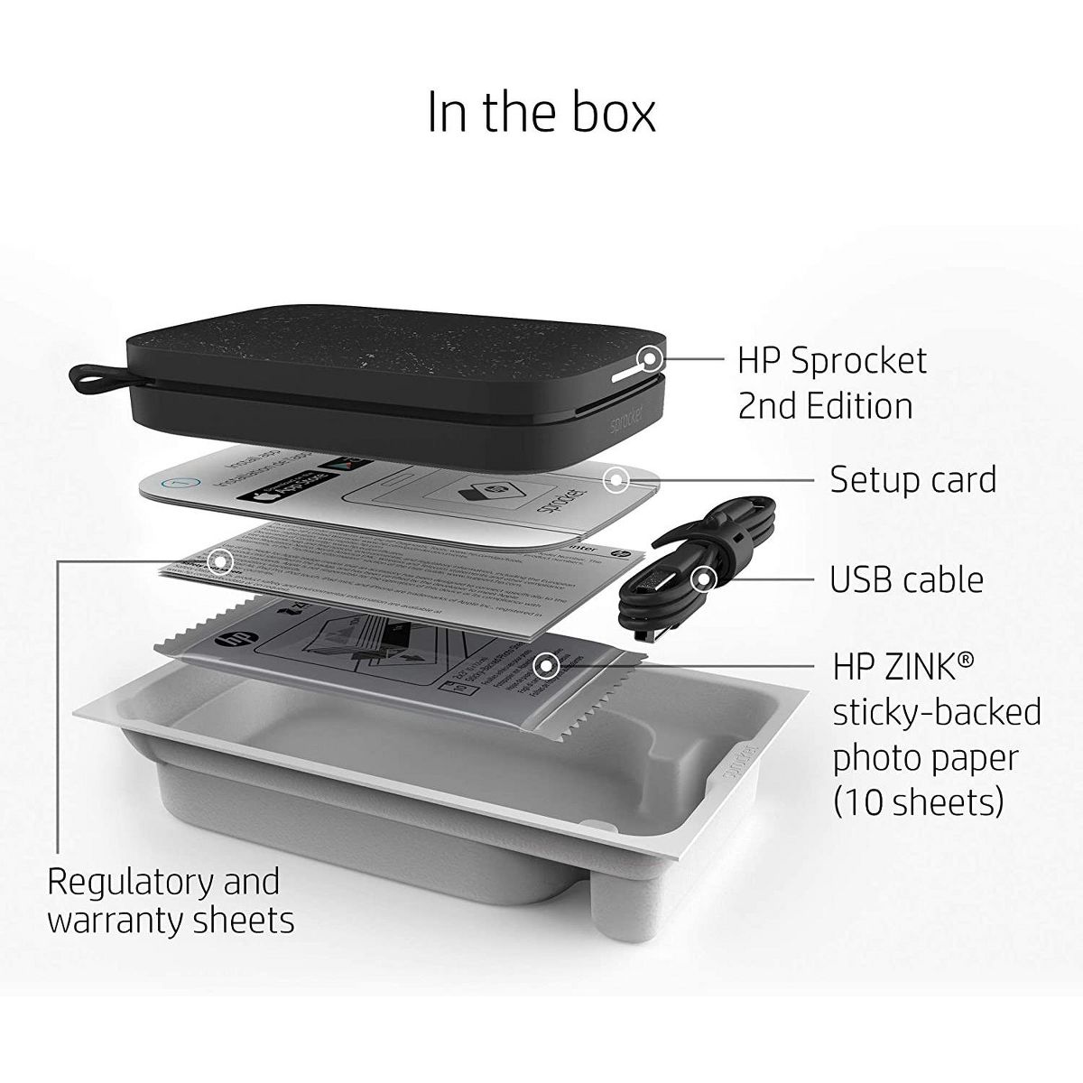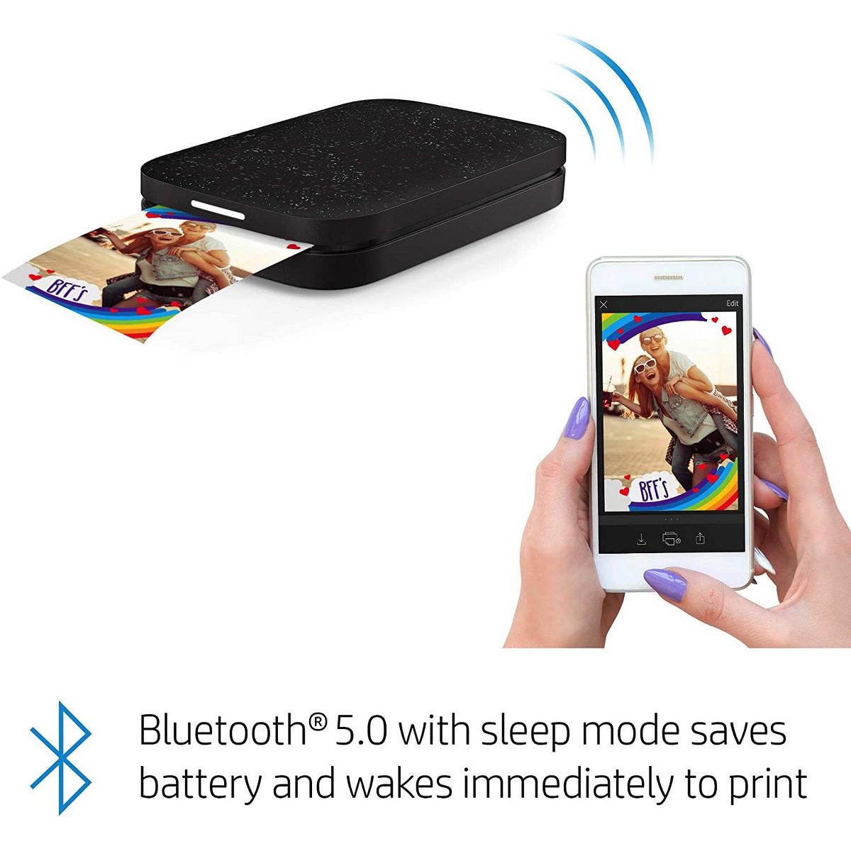 HP Sprocket Portable 2x3" Instant Photo Printer (Black Noir) Print Pictures on Zink Sticky-Backed Paper from your iOS & Android Device.