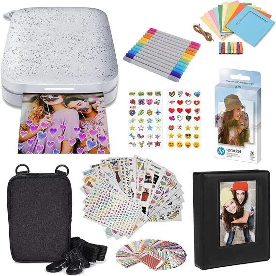 HP Sprocket Portable 2x3 Instant Photo Printer (Luna Pearl), Photo Paper & Accesories Starter Bundle