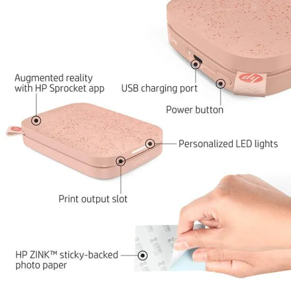 HP Sprocket Portable Photo Printer (2nd Edition) – Instantly Print 2x3 Sticky-Backed Photos from Your Phone – [Blush] [1AS89A]