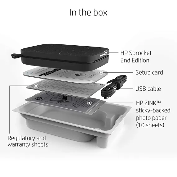 HP Sprocket Portable Photo Printer (2nd Edition) – Instantly Print 2x3 Sticky-Backed Photos from Your Phone – [Noir] [1AS86A]