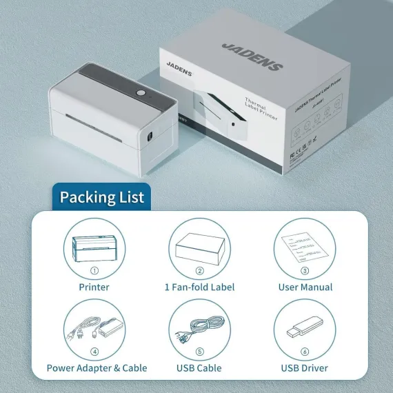 Bring smart, compact efficiency to your workspace with the JADENS 468BT Thermal Label Printer. Designed for simplicity and style, this lightweight thermal printer connects wirelessly via the JADENS Printer app for iOS and Android, and via Bluetooth for Windows (7 or later). It’s perfect for printing shipping, barcode, warehouse, and address labels—no ink, no toner, no hassle. With high-speed output (up to 60 4x6" labels per minute) and crisp 203 DPI resolution, the 468BT delivers clean, waterproof labels using any direct thermal label between 1.57" and 4.1" wide. It supports PDF, JPEG, and PNG formats and works with all major shipping platforms that use fixed-size labels. Setup is quick with the included USB, and its compact footprint makes it ideal for home offices, dorm rooms, or small business counters. Whether you're organizing, shipping, or labeling on the go, the 468BT brings convenience and efficiency to your workflow.