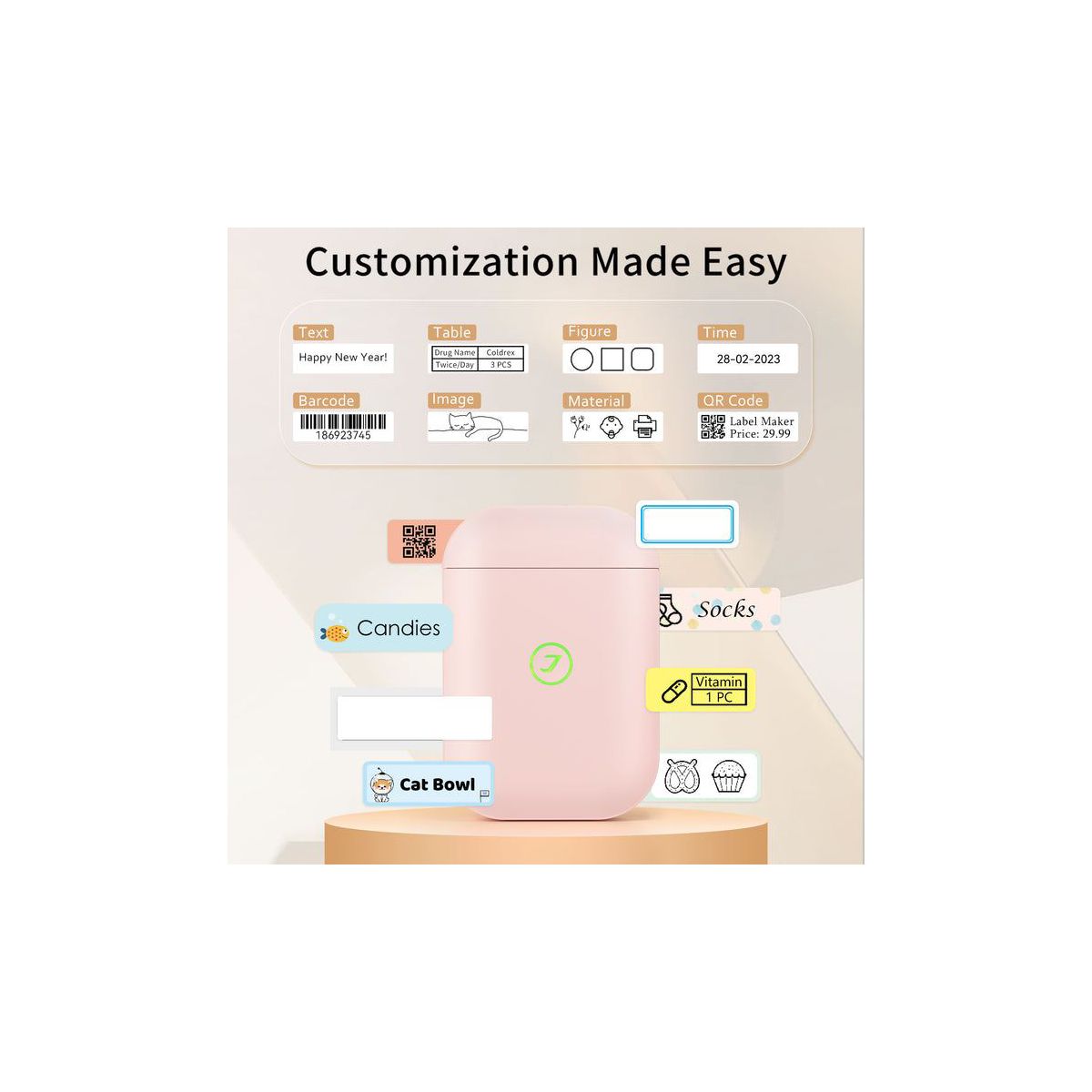 The JADENS D11 Bluetooth Thermal Label Maker is a compact, rechargeable device designed for effortless labeling at home, in the office, or on the go. With wireless Bluetooth connectivity and a free companion app for iOS and Android, you can create custom stickers and labels in minutes using over 400 templates, 60+ frames, 1000+ symbols, and a wide variety of fonts and languages. Powered by BPA-free thermal technology, the D11 prints crisp, waterproof, and oil-proof labels without ink or toner—saving you time and money. Its high-speed chip and 203 DPI resolution ensure sharp, fade-resistant output. The built-in battery lasts up to 5 hours of continuous use and holds a charge for weeks. Whether you're organizing storage, labeling school supplies, tagging cosmetics, or crafting personalized gifts, the D11 makes it easy to bring your ideas to life. One roll of thermal label paper is included to get you started right away.