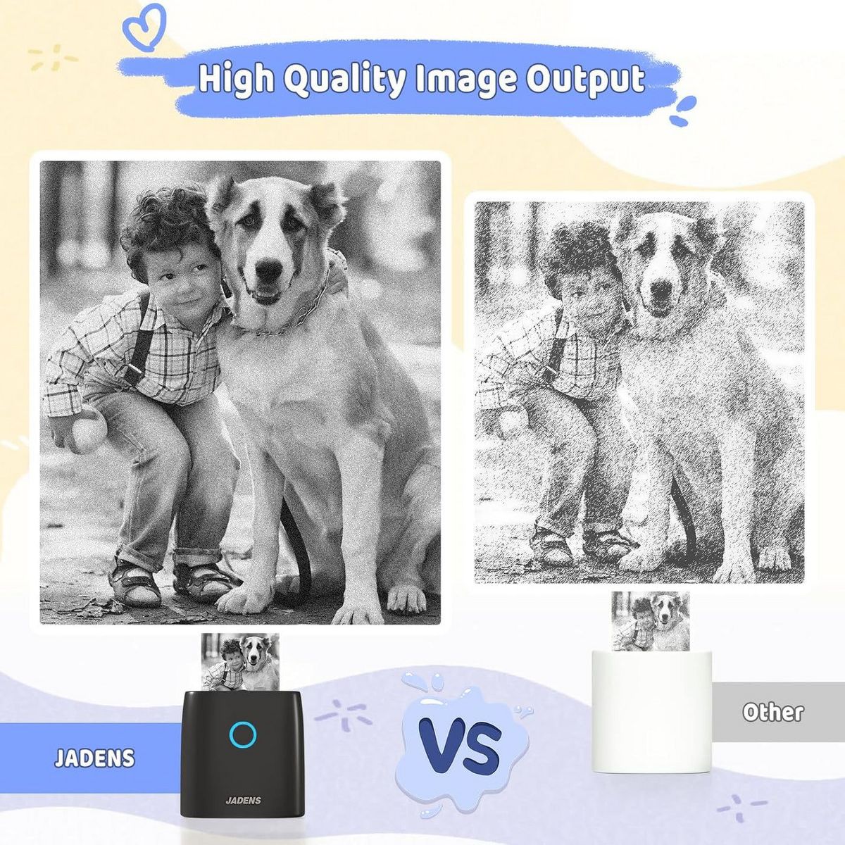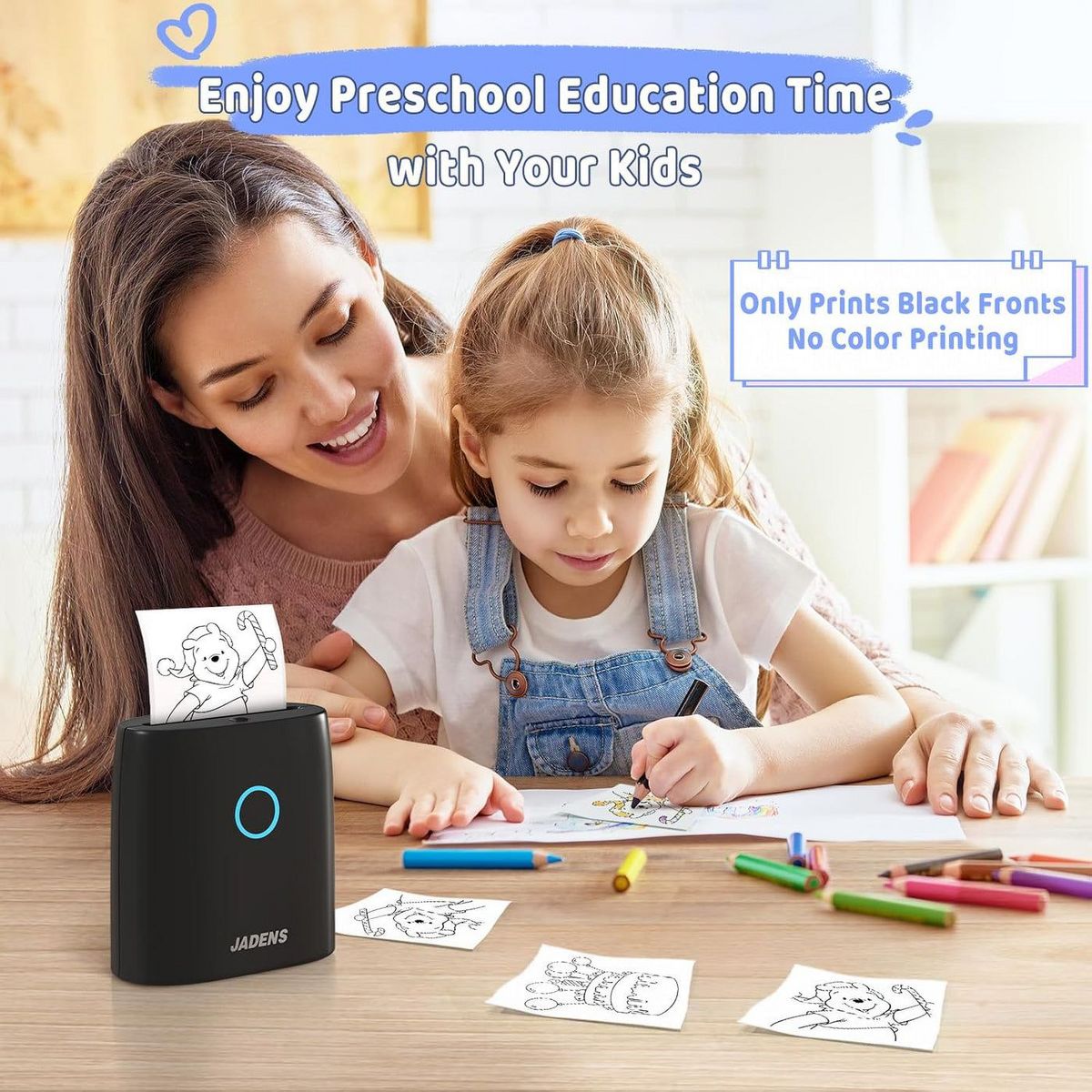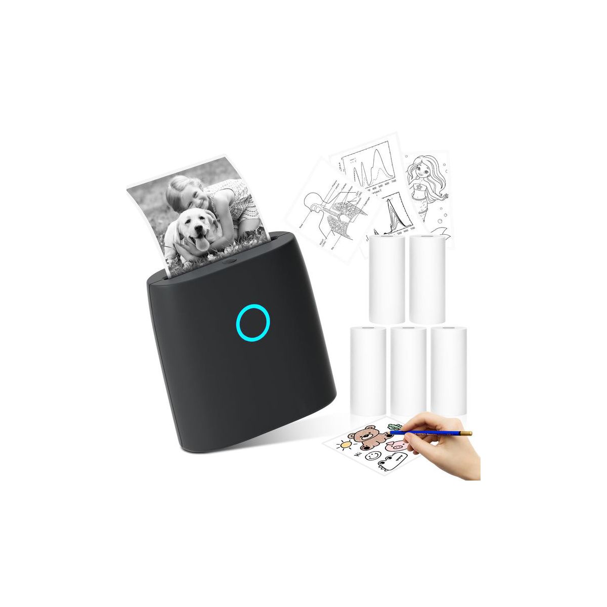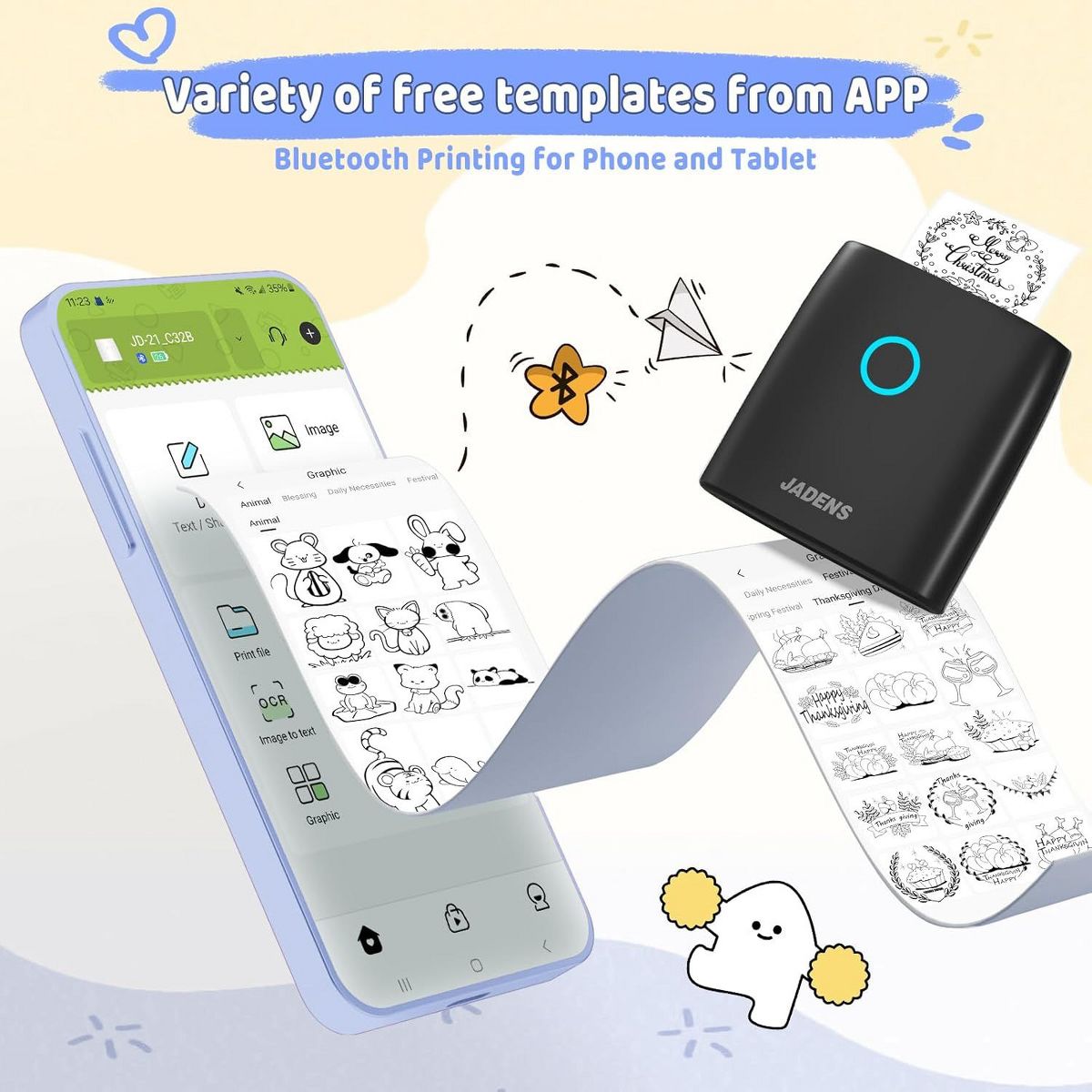 JADENS JD21 Mini Sticker Maker Printer – Bluetooth Thermal Printer with 5 Rolls Paper - DIY Sticker Maker, Gift for Kids, Ink-Free & BPA-Free (Black)
