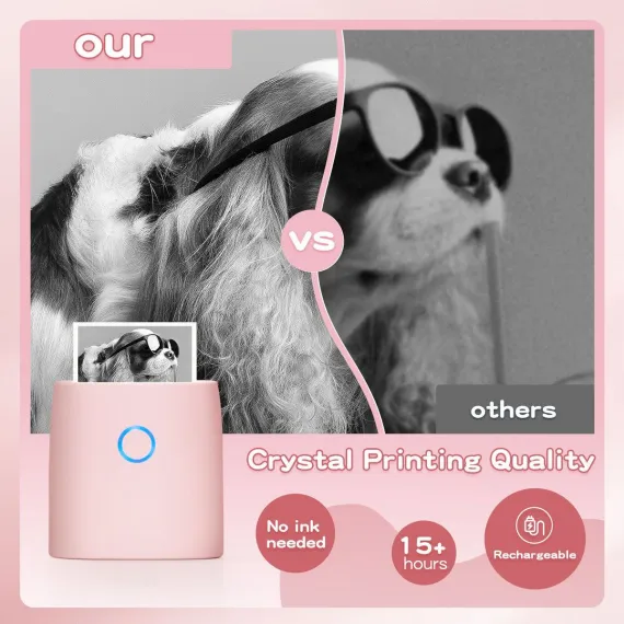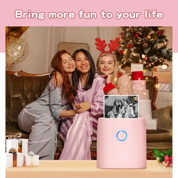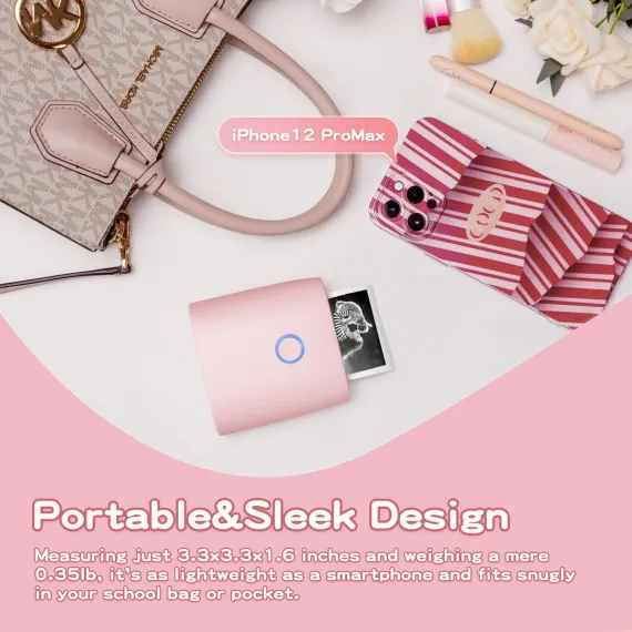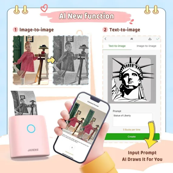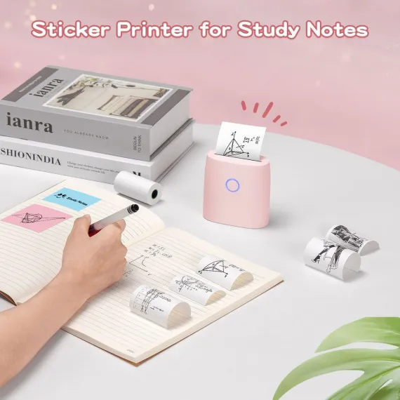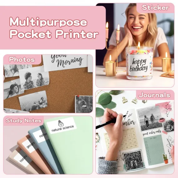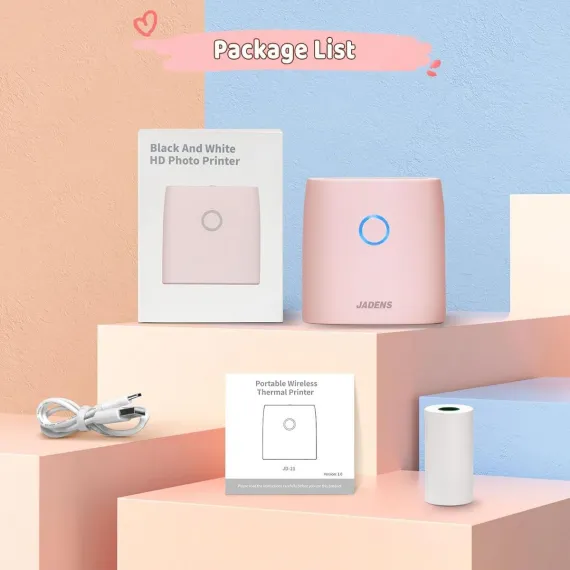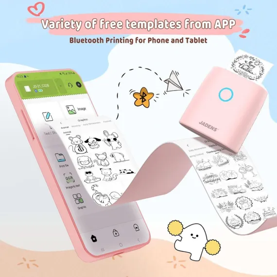 JADENS JD21 Mini Sticker Maker Printer – Bluetooth Thermal Printer with 5 Rolls Paper - DIY Sticker Maker, Gift for Kids, Ink-Free & BPA-Free (Pink)