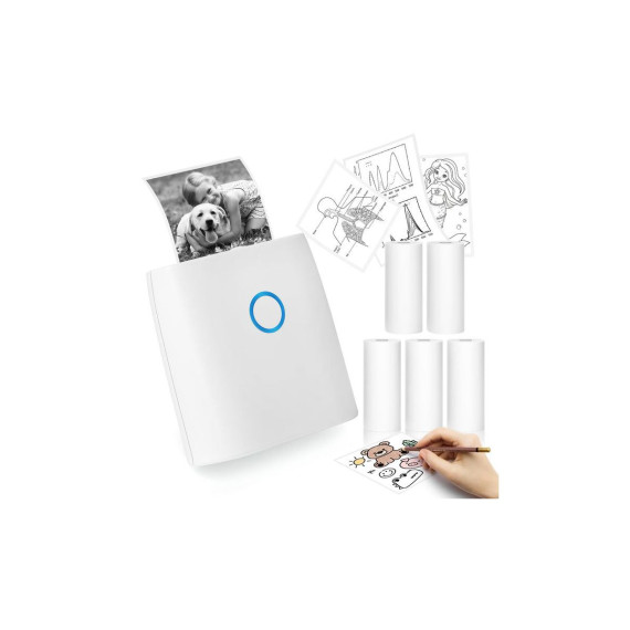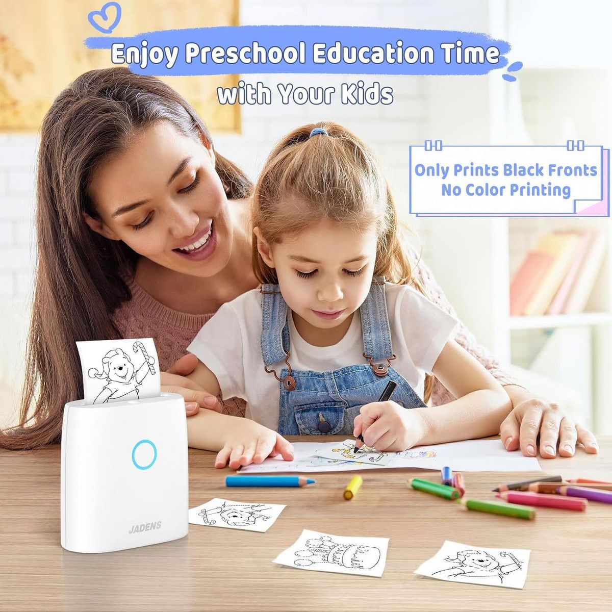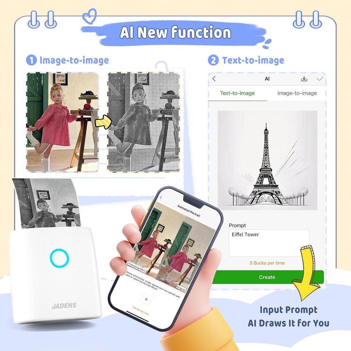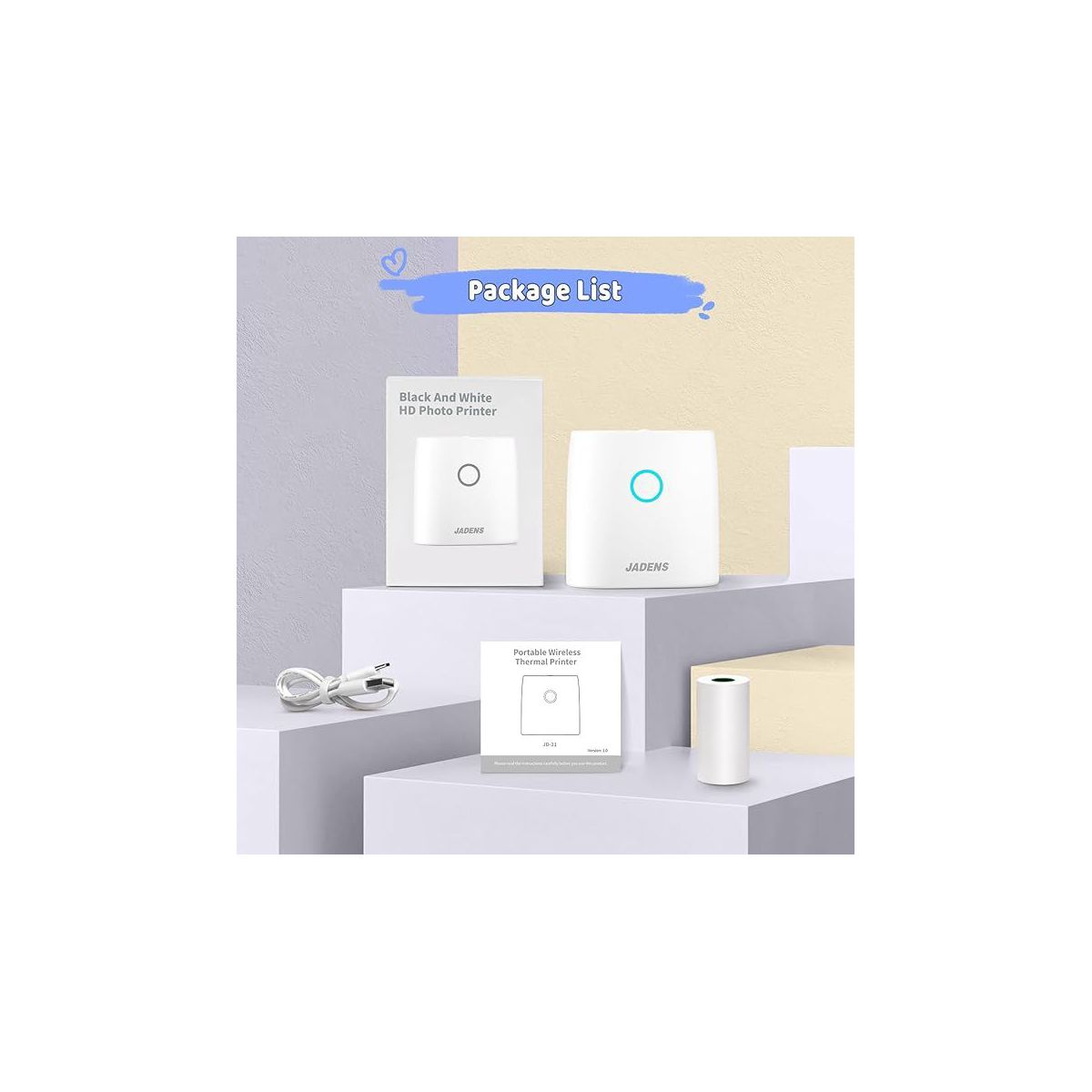 JADENS JD21 Mini Sticker Maker Printer – Bluetooth Thermal Printer with 5 Rolls Paper - DIY Sticker Maker, Gift for Kids, Ink-Free & BPA-Free (White)