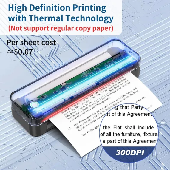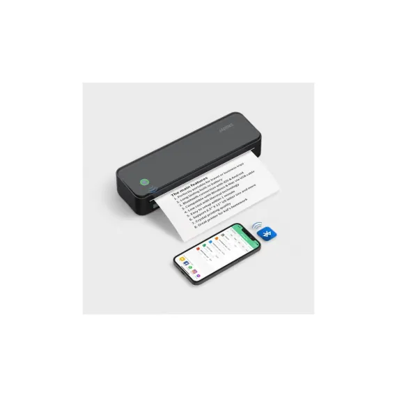 The JADENS PD-A4 Portable Thermal Printer is a smart, ink-free solution for everyday document printing—perfect for home, school, and small office use. Using advanced thermal technology, it prints crisp monochrome documents without ink, toner, or ribbons. Compact and battery-powered, it’s built for mobility. Whether you're printing in your car, during travel, or on a business trip, this printer handles contracts, forms, study materials, boarding passes, and more with ease. Setup takes only 3 minutes via Bluetooth (using the JADENS Printer app for iOS and Android) or USB for Windows, Mac, ChromeOS, and Linux. It prints up to 360 sheets per charge and offers 3 hours of continuous use or 90 days of standby time. The adjustable feed tray supports paper widths from 2" to 8.5", including full letter-sized sheets.
