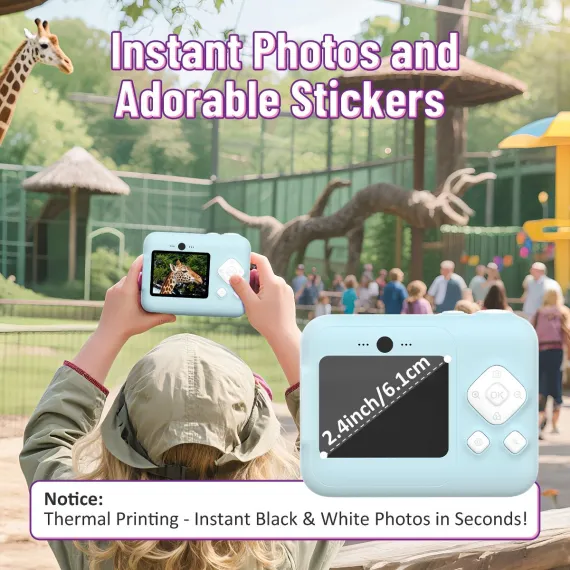 Funny Instant Print Camera : This kids camera instantly prints black-and-white photos in just 1 second using thermal technology, while saving full-color versions to the included 32GB SD card. With 3 rolls of printing paper, children can snap, print, and doodle on their creations for endless fun.