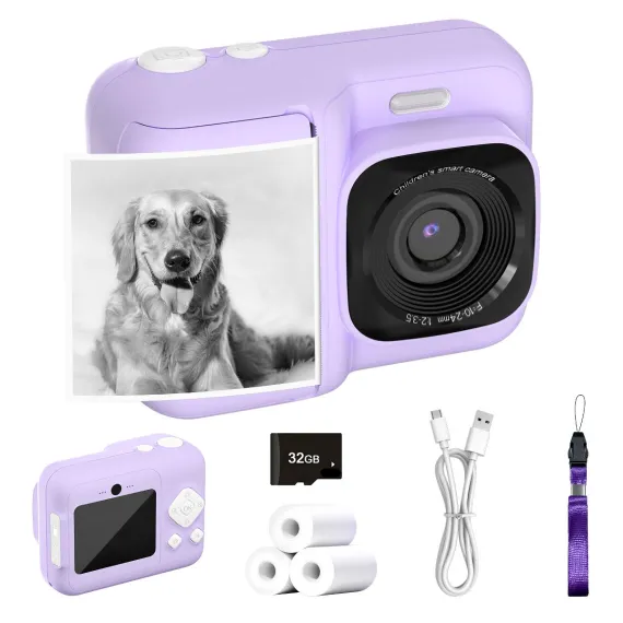 Funny Instant Print Camera : This kids camera instantly prints black-and-white photos in just 1 second using thermal technology, while saving full-color versions to the included 32GB SD card. With 3 rolls of printing paper, children can snap, print, and doodle on their creations for endless fun.