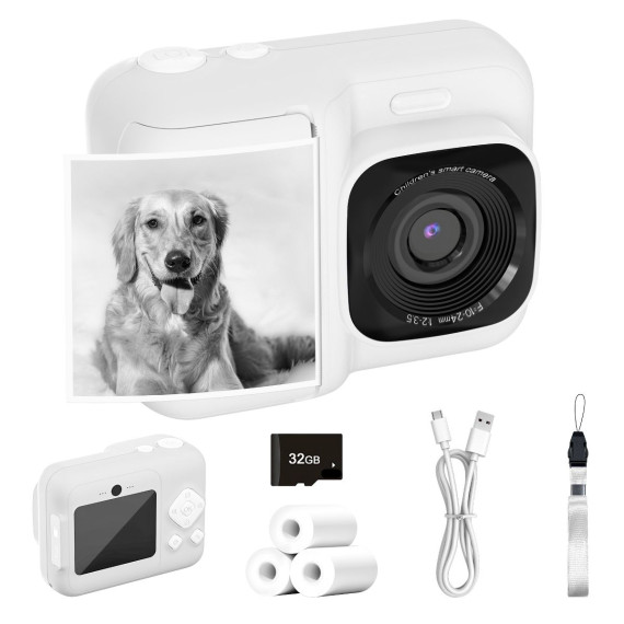 Funny Instant Print Camera : This kids camera instantly prints black-and-white photos in just 1 second using thermal technology, while saving full-color versions to the included 32GB SD card. With 3 rolls of printing paper, children can snap, print, and doodle on their creations for endless fun.