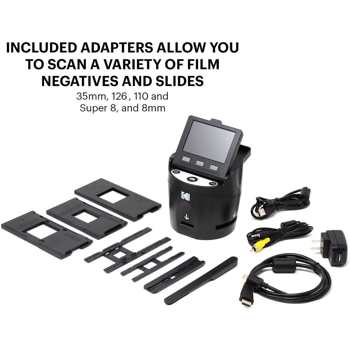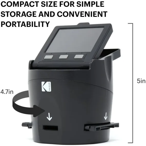 With the new SCANZA Digital Film Scanner from KODAK, you can view, edit and convert your old photos, no tech savvy necessary! This easy yet elegant 22MP scanner delivers crisp, clear, beautiful images with the press of a button. Best of all, there's no straining to see. Watch old memories come to life on the large 3.5"" LCD screen with extra wide viewing angle and gallery mode-perfect for previewing pictures, or for using the photo negative scanner as a desktop photo frame!