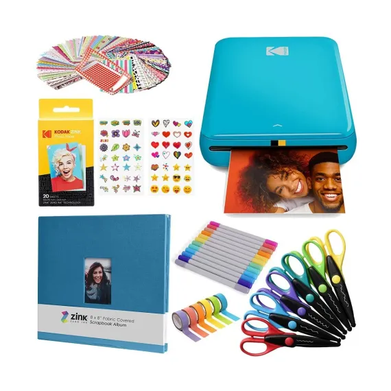 Kodak Step Mobile Instant Photo Printer 2x3" (Blue) & Scrapbook Bundle for iOS & Android