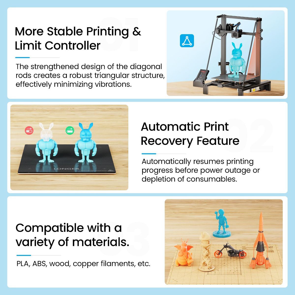 Experience fast, precise, and reliable 3D printing with the Longer LK5 Pro. Featuring a large 300×300×400mm build volume, ultra-quiet operation, 0.1mm layer precision, and upgraded dual-fan cooling, it's the ideal FDM printer for makers, educators, and creators who demand quality and efficiency.