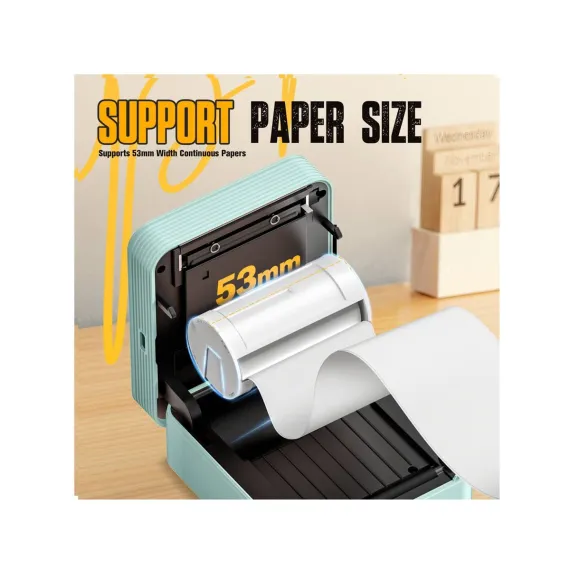 Nelko PM230 Portable Bluetooth Sticker Printer Green with 2pk 54mmx3.5m White Rolls