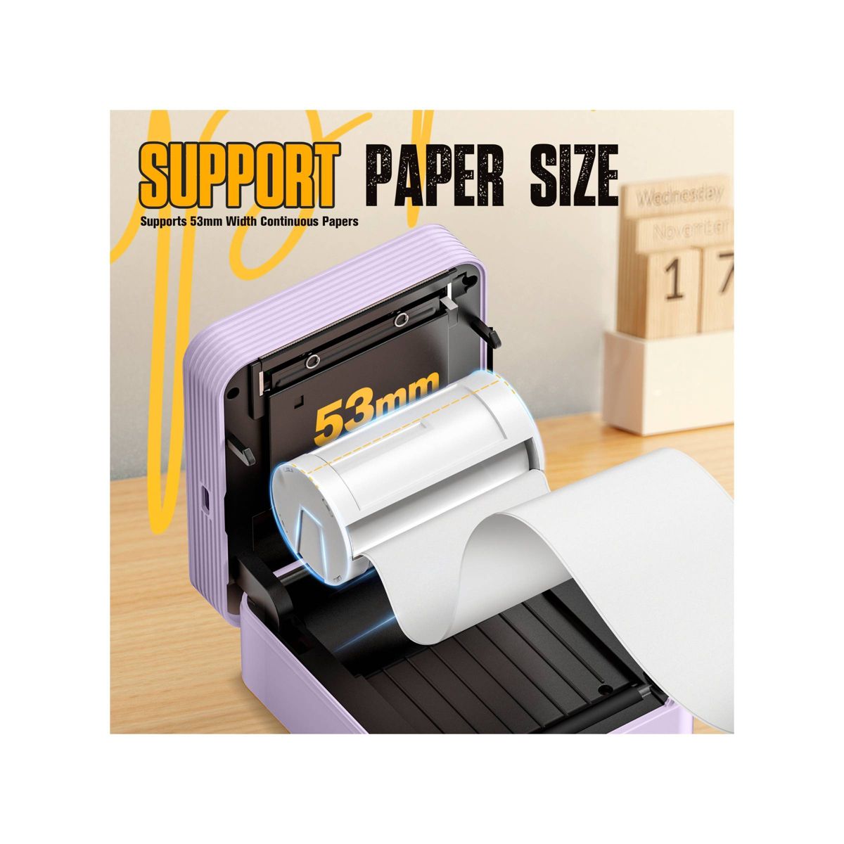 Nelko PM230 Portable Bluetooth Sticker Printer Purple with 2pk 54mmx3.5m White Rolls