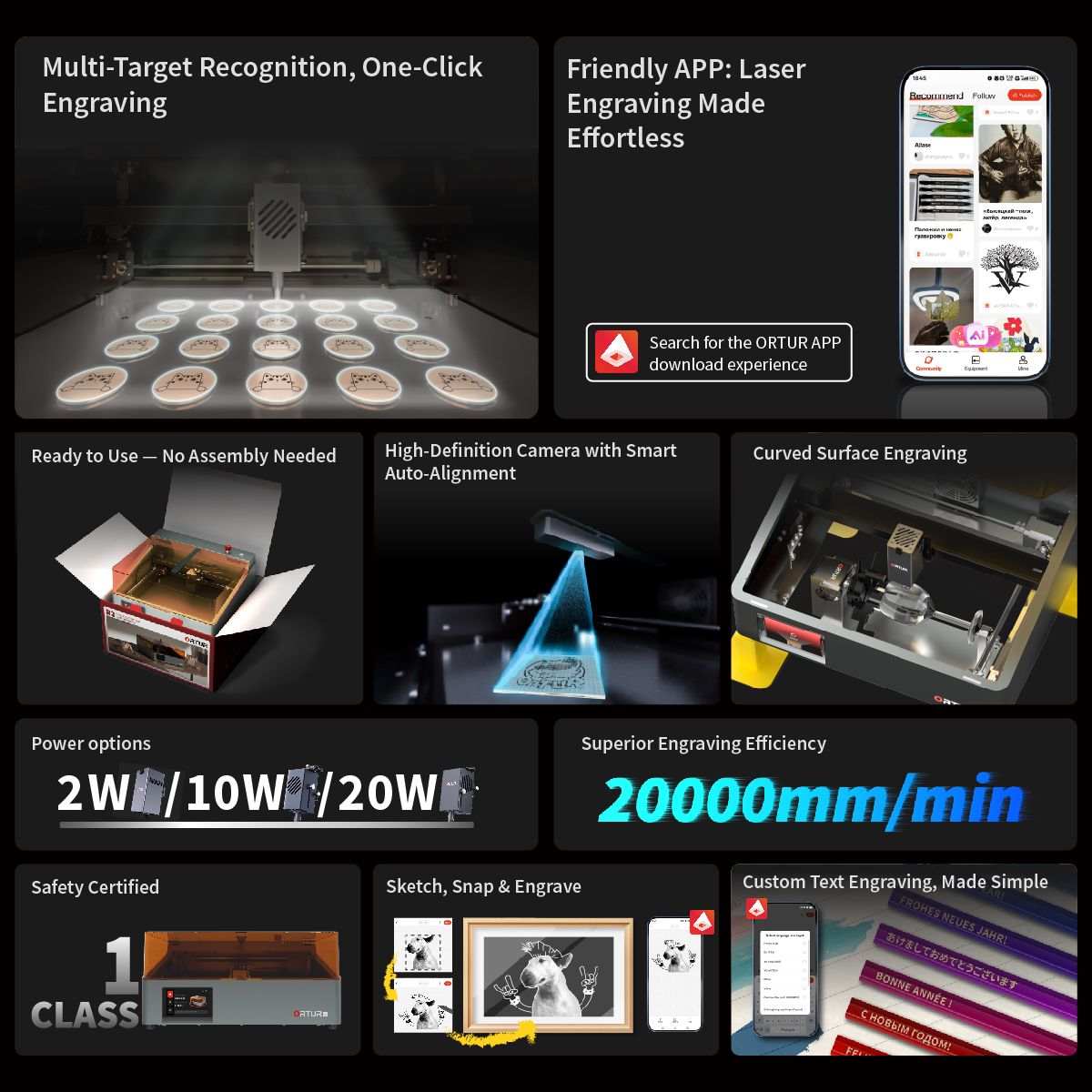 Ortur R2 10W Enclosed Laser Engraver & Cutter, Smart Camera Positioning, Batch Engraving Wood/Metal