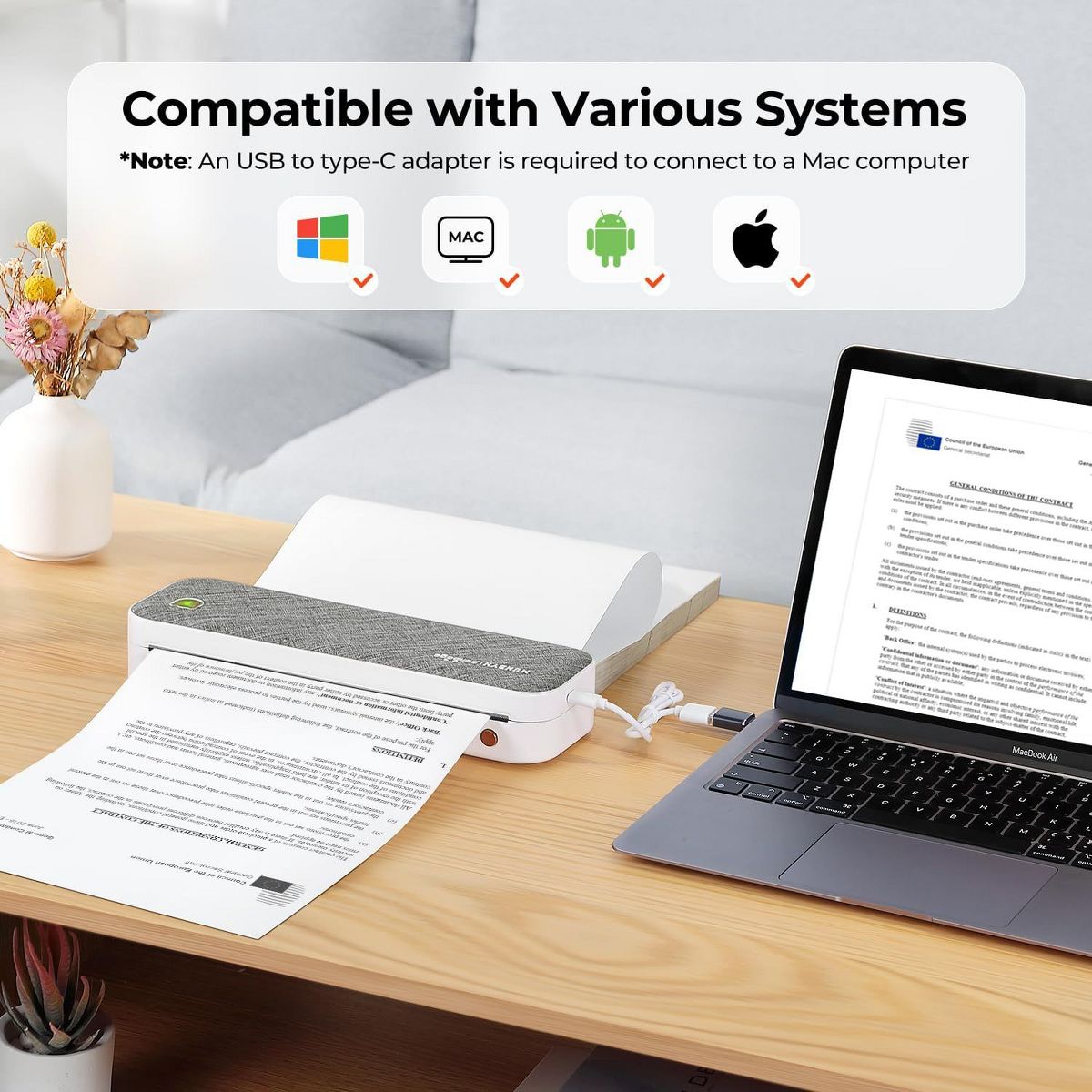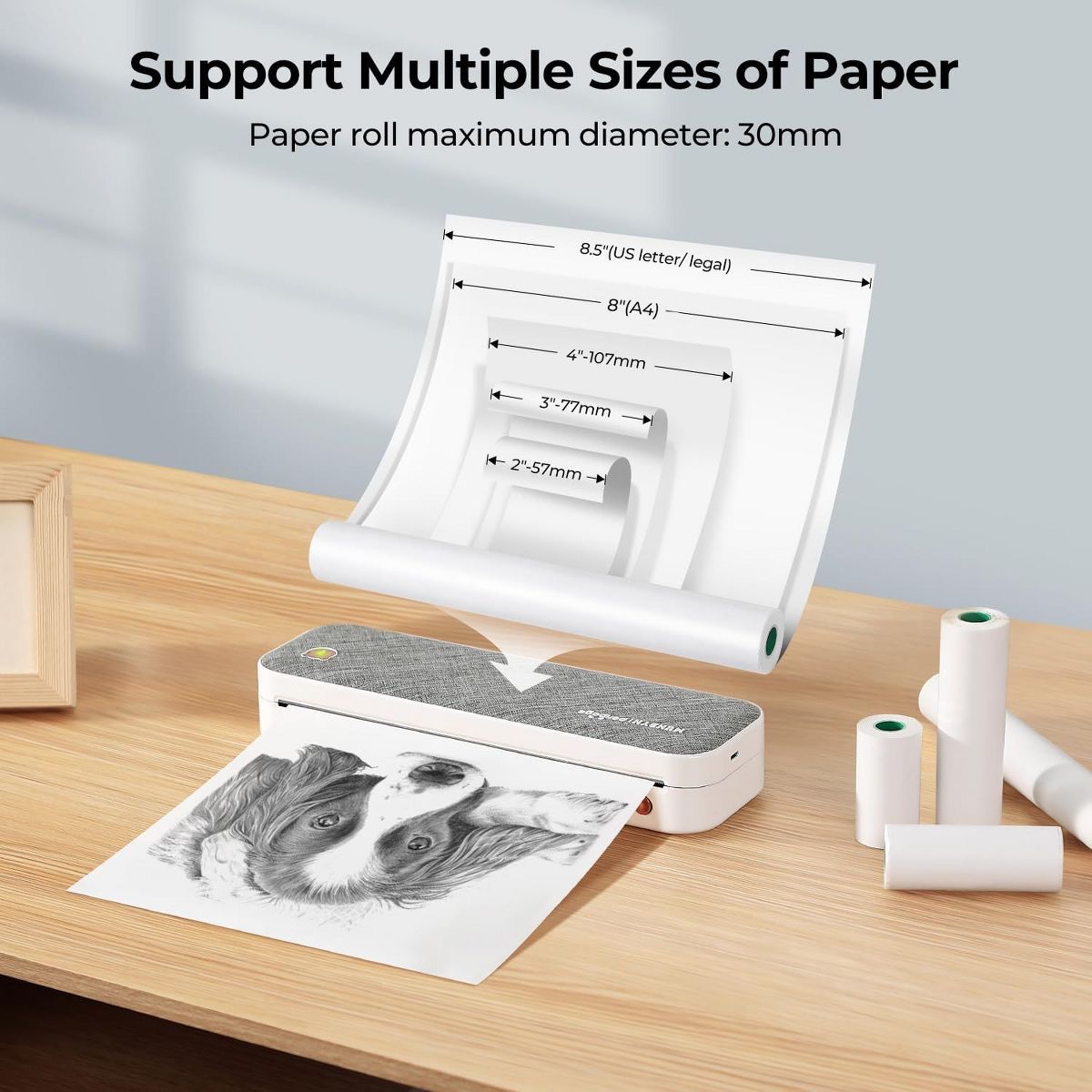 PeriPage Portable Bluetooth Thermal Printer: US Letter & A4 Thermal Paper, Android Compatible, iOS, Laptops - Inkless Mobile Office Printer