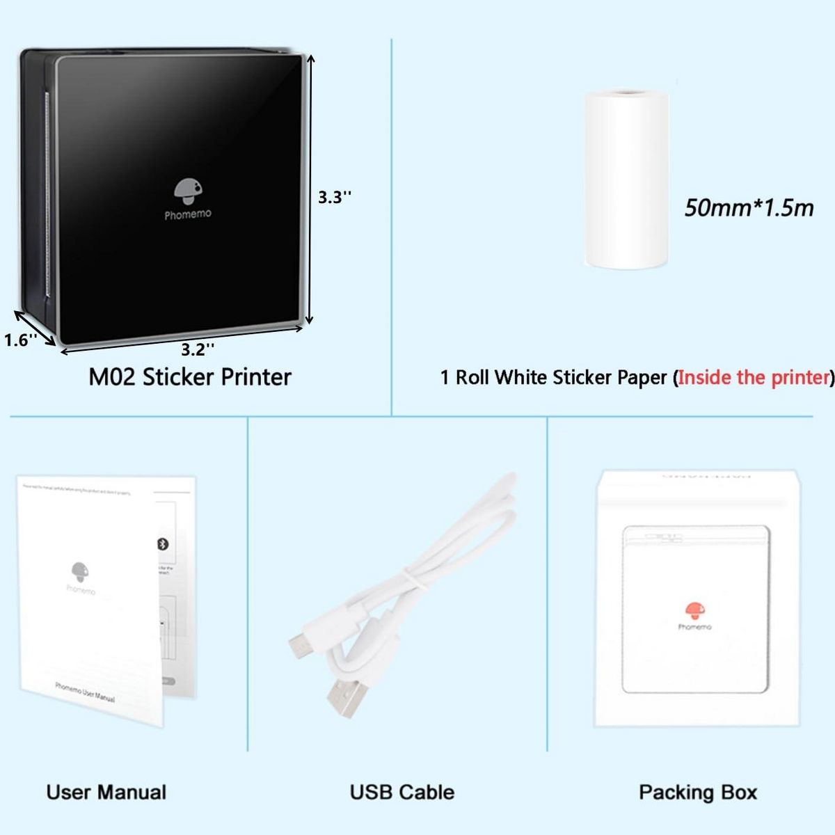 Phomemo M02 Wireless Mini Printer for Study Notes and Stickers - Black