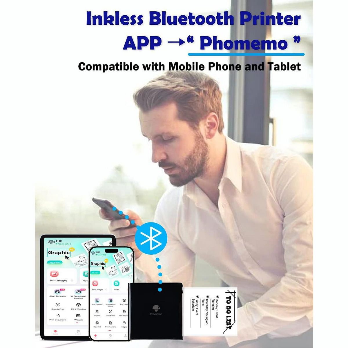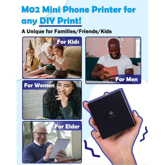 Phomemo M02 is a wireless mini printer designed for students and bullet journal enthusiasts. Its compact size makes it easy to take anywhere. With the mobile app, you can create personalized stickers, print your photos, and even generate AI images with just a few taps.
