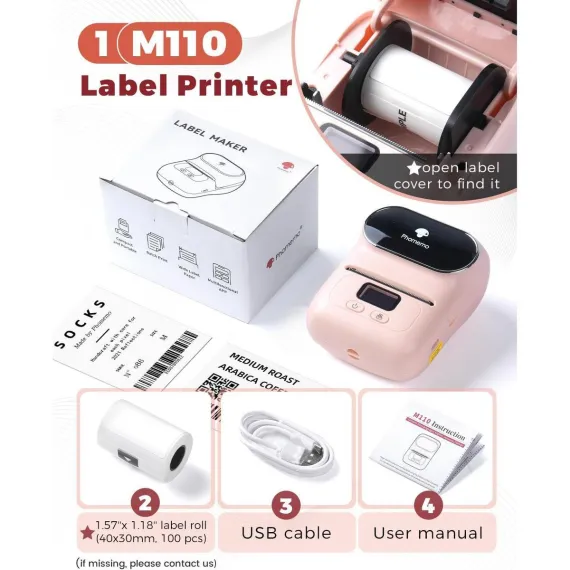 Phomemo M110 Portable Printer Label Maker for Product Label and Logo Sticker - Pink