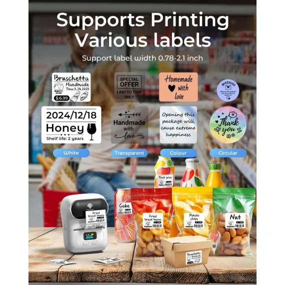 The M220 delivers high-definition printing and fast performance, making it ideal for businesses and offices that need to print product labels, price tags, address labels, and more. The Print Master APP offers a wide variety of label templates for quick and easy printing in various scenarios.