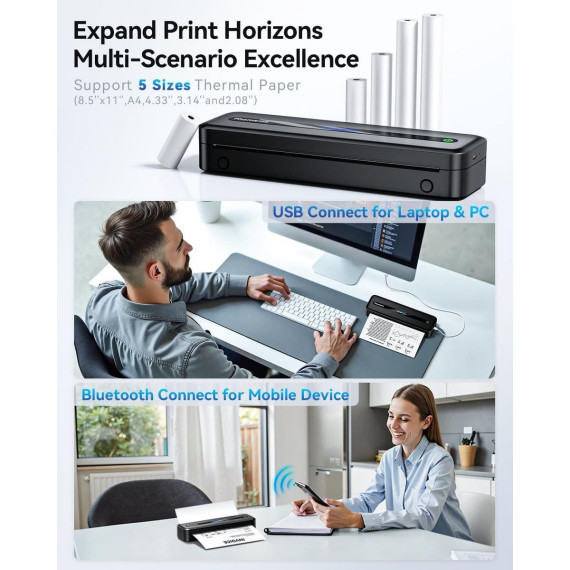 The Phomemo M832 is the ultimate high-definition printer for work-from-home and on-the-go printing. Equipped with a 300dpi print head and a built-in paper bin, this compact, inkless thermal printer delivers crisp, professional-quality documents anytime, anywhere. Its seamless Bluetooth connectivity and versatile paper support make it the perfect solution for effortless printing, whether you're at home, in the office, or traveling.