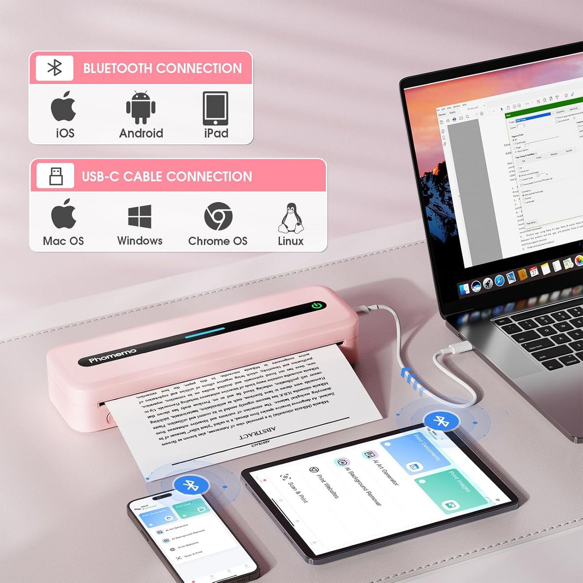 Phomemo M832 Portable Mini Wireless Printer for Travel and Home - Pink