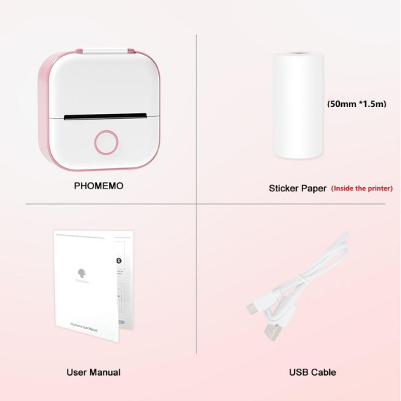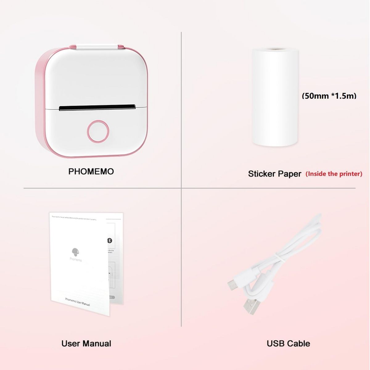 Phomemo T02 Portable Mini Printer for Study Notes and Stickers - Pink