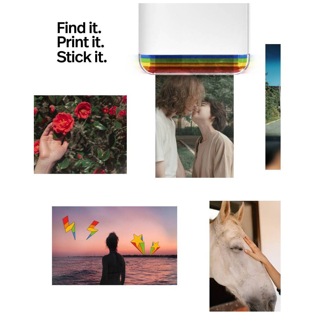 Find it, print it, stick it: it’s that easy with Polaroid Hi-Print 2x3 printer. A Bluetooth® pocket photo printer that turns your phone’s shots into high-quality prints that you can peel and stick on whatever (and whoever) you like. It’s the pocket printer your imagination needs, and now made with 30% recycled materials. Only compatible with Polaroid Hi·Print 2x3 Paper Cartridge.