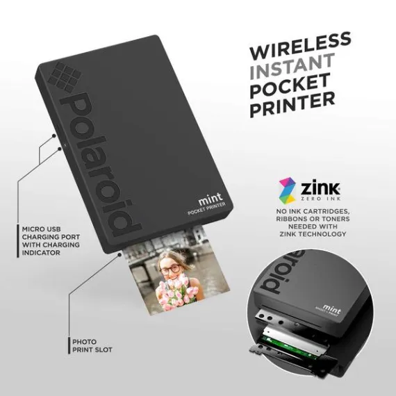 Make sure this fits by entering your model number. A smartphone printer in your pocket - amazing handheld printer Prints high-quality, Full-color photographs from any iOS or Android phone Innovative zero Ink technology - there’s no need for pricy toner or printing Supplies; Zink cartridges combine paper & Ink all in one. Packs available in 20, 30 or 50 sheets Built-in Bluetooth connectivity - skip the confusing cables & messy wires; pair w/ any smart device to share photos fast & easy Download the Polaroid app - Free companion app lets you unlock endless editing features including crop, Filter effects, stickers & other creative flair for your craft projects Fashion forward & travel Friendly - Pick from [5] fabulously vibrant colors; miniature Printers measures 4.5” x 3.0” x 0.7” & weighs only 5.7 ounces