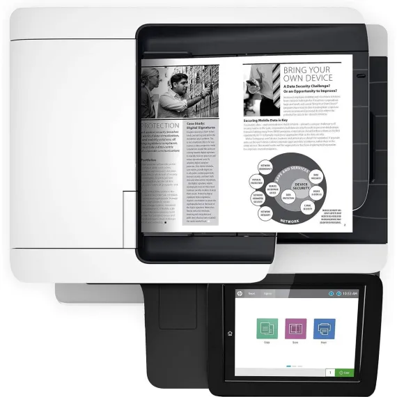 Choose an HP LaserJet Enterprise MFP designed to handle business solutions securely and efficiently, and helps conserve energy with HP EcoSmart black toner. Keep up with the demands of growing business with a printer you can rely on. • Functions: Print, copy, scan • Print Cartridges/Bottle, Number: 1 (black) • Print speed black: Normal: Up to 45 ppm; Up to 52 ppm (Hp High Speed) • Monthly Duty Cycle (max): 150000 pages • Recommended monthly page volume: 4000 to 15000 • Print quality black (best): Up to 1200 x 1200 dpi • Display: 8.0 in (20.3 cm) touchscreen (1024x768) LCD; smooth gesture enabled touchscreen • Automatic paper sensor: No • Connectivity, standard: 1 Hi-Speed Device USB 2.0; 2 Hi-Speed USB 2.0 Host; 1 Gigabit Ethernet • Memory: 1.25 GB (printer), 512 MB (scanner) • Hard Disk Drive: 320 GB • Paper handling input, standard: 100-sheet multipurpose Tray 1, 550-sheet input Tray 2 • Maximum output capacity (sheets): Up to 250 sheets • Duplex printing: Automatic (standard) - This item is a manufacturer-refurbished product. It has been inspected, cleaned, and repaired to meet manufacturer specifications and is in excellent condition. The refurbishment process includes functionality testing, basic cleaning, inspection, and repackaging. The product ships in a generic box.