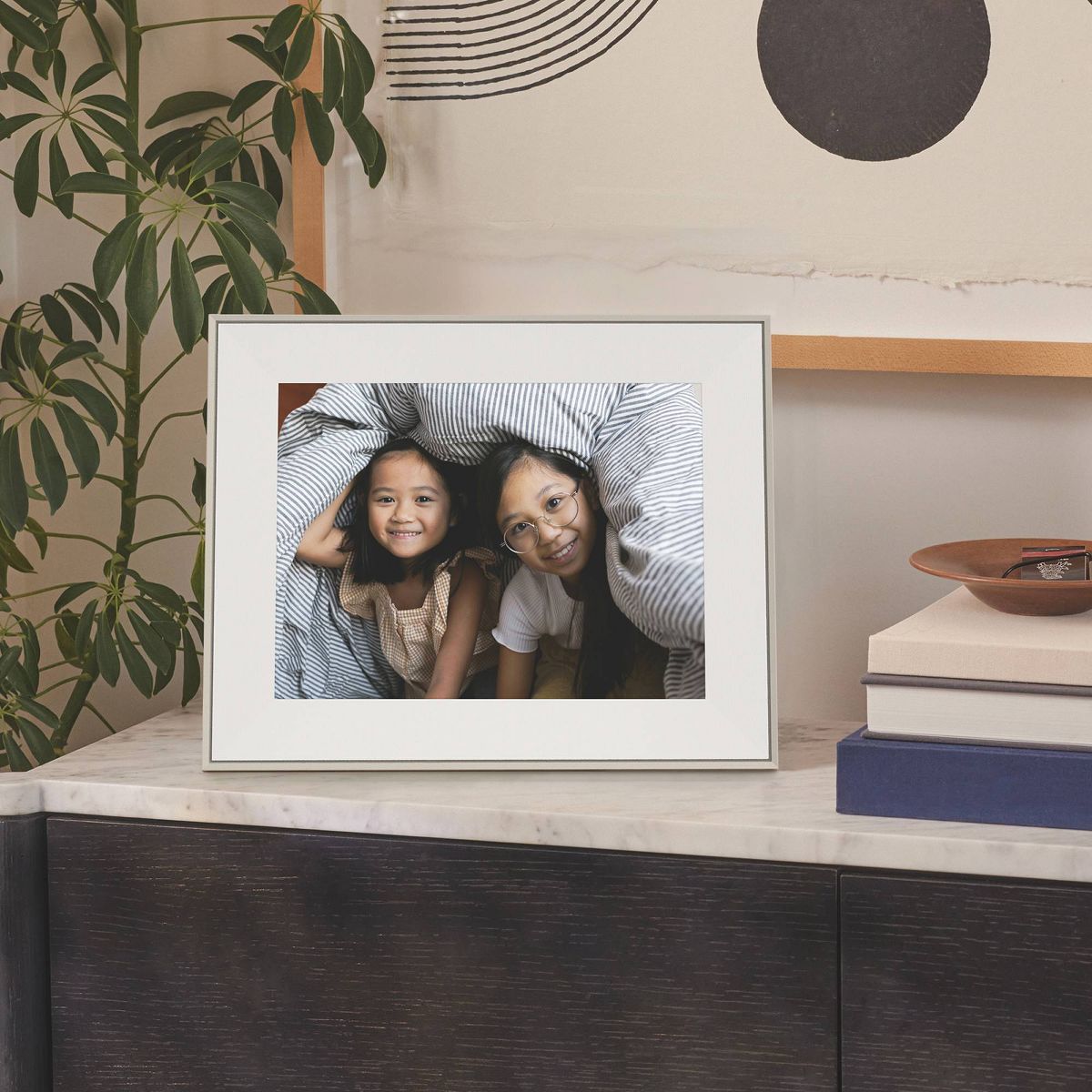 QUICK & EASY SETUP: Set up in minutes on WiFi and instantly add photos and videos from your phone using the free Aura app, available on iOS and Android.