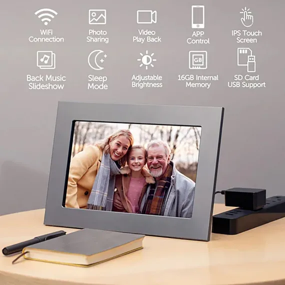 Send pictures and videos from your smartphone to your eco4life CPF1033 Wi-Fi® Digital Photo Frame from anywhere in the world using the eco4life app. Its 10.1-in., full-color, 1280 x 800-pixel, high-resolution IPS LCD touch screen in its elegant metal frame ensures your precious memories are beautifully presented. The eco4life smart frame is simply the best way to enjoy your favorite photos and videos with your families and friends. The 2.4-GHz Wi-Fi® digital photo frame is the ideal gift for your parents or grandparents and a stunning way to keep you and your loved ones connected.