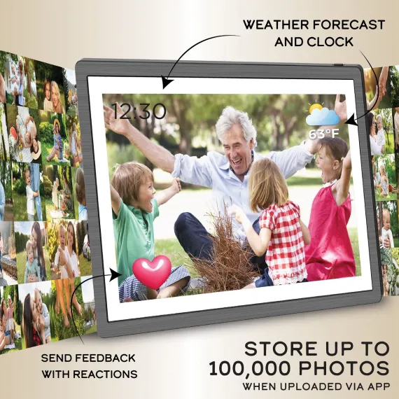 Instantly share photos from your phone with parents friends and family around the globe, through our easy and intuitive app. Invite friends and family to share pictures to your frame or send photos to their frames all via WiFi. This makes an invaluable gift to keep family and loved ones connected forever! Unparalleled Image Quality: Experience our vivid and crisp displays ranging up to 22” offering stunning resolutions highest in their industry class.