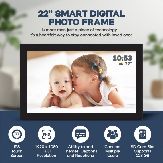 or send photos to their frames all via WiFi. This makes an invaluable gift to keep family and loved ones connected forever! Unparalleled Image Quality: Experience our vivid and crisp displays ranging up to 22” offering stunning resolutions highest in their industry class.