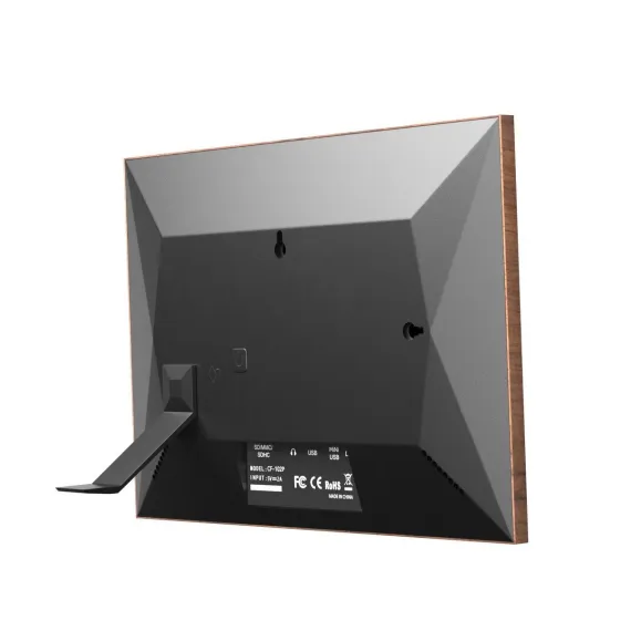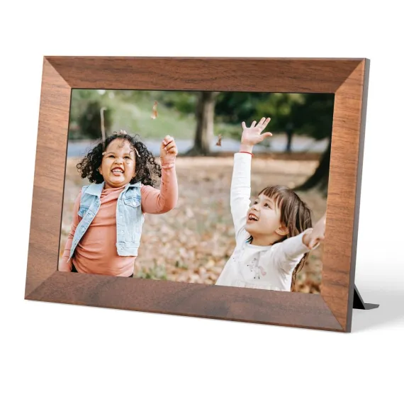 The KODAK CF102P BURLYWOOD- 10.1-inch HD digital photo frame featuring a vibrant 1280x800 IPS display for crystal-clear, wide-angle viewing. With 1GB RAM and 32GB of internal storage, it allows you to store and display thousands of photos. Encased in a durable plastic frame, it offers WiFi connectivity for easy sharing and remote photo uploads via the companion app.