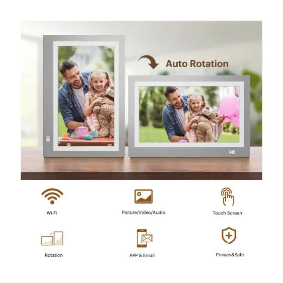 The KODAK RWF-116B GREY is an 11.6-inch Wi-Fi enabled advanced digital photo frame designed to showcase your favorite memories in stunning clarity. With its high-resolution display and wireless connectivity, you can easily upload and display photos from anywhere. The sleek grey design adds a modern touch to any room, making it perfect for home or office use.