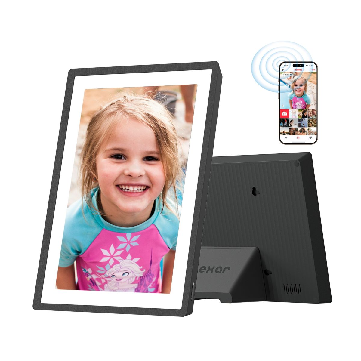Easily and directly share photos and videos with friends and family – in high resolution that perfectly catches the moment. Bring friends and family closer with the pexar 10.1” frame. Share photos and videos via the internet in high-res while keeping your information private and secure. With easy setup, it is user-friendly for everyone, making it the ideal gift for displaying photos and videos. Powered by Lexar, a brand you know you can rely on.