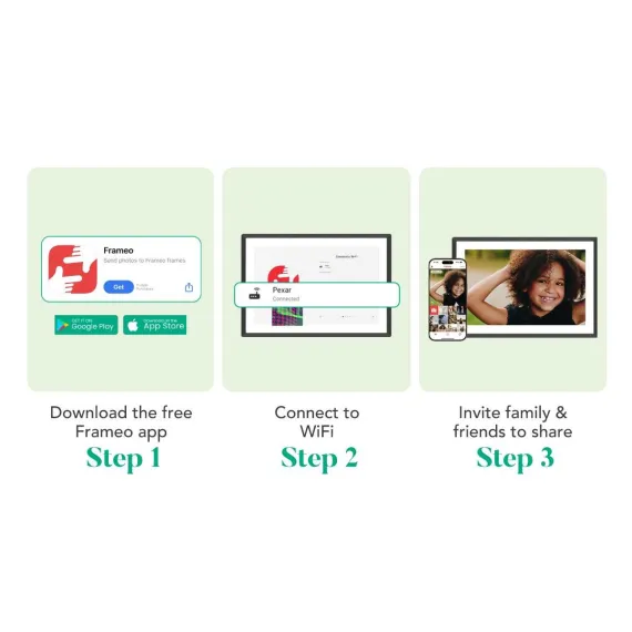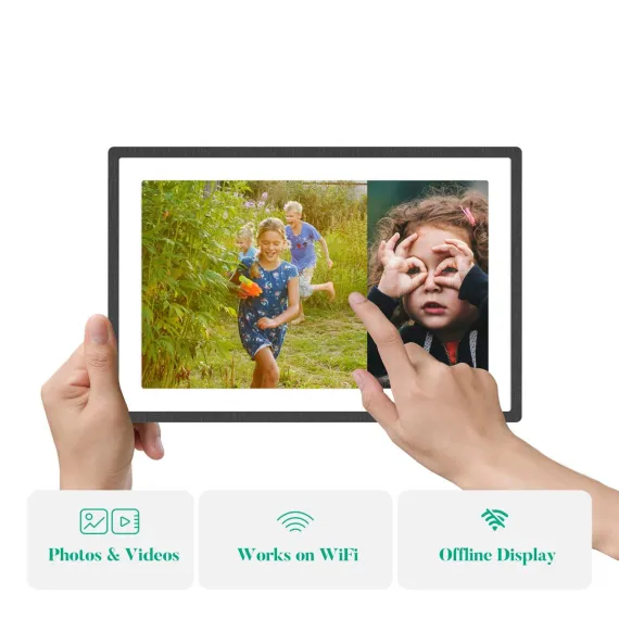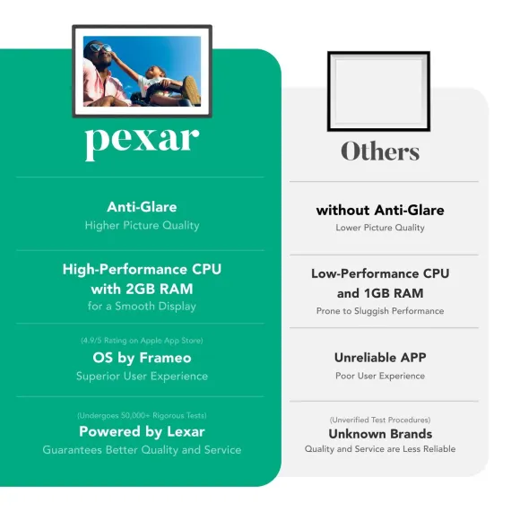catches the moment. Bring friends and family closer with the pexar 10.1” frame. Share photos and videos via the internet in high-res while keeping your information private and secure. With easy setup, it is user-friendly for everyone, making it the ideal gift for displaying photos and videos. Powered by Lexar, a brand you know you can rely on.