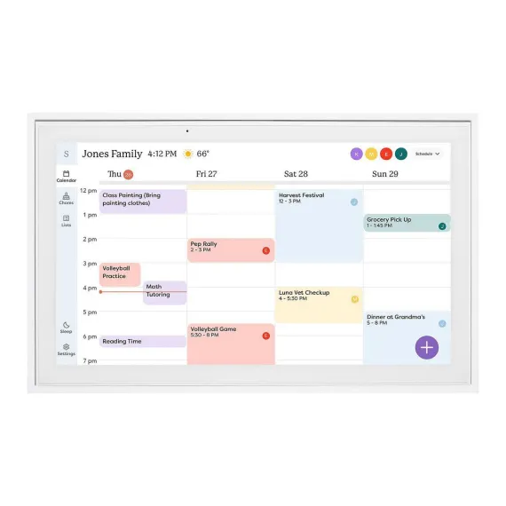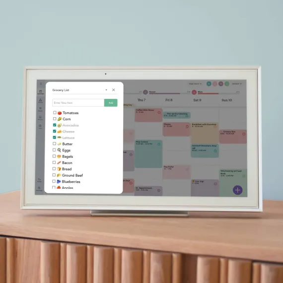The All-In-One Smart Family Calendar: Get the whole family organized with chore charts, meal planning, and customizable lists — all on a WiFi-connected digital display the whole family can use. Beautiful and intuitive digital display: 15” touchscreen can be mounted on the wall or displayed on its stand. High-quality metal stand and wall mount included.