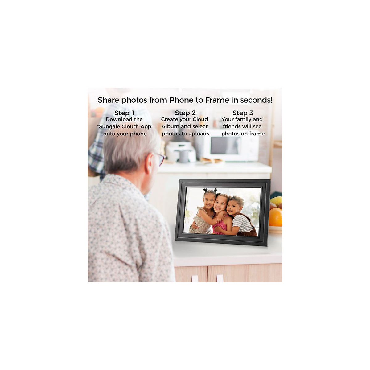 A Cloud Digital Frame is a great gift for sharing memories with family, friends and especially parents and grandparents. The elegant design will look great anywhere in the home and with auto-rotation, you can have photos displayed horizontal or vertical. Sharing photos is simple, fun and easy - just snap photos on your phone, and then use the APP (available on iOS and Android) to share to the Cloud Frame fast, simple and anytime no matter where you are. Get the whole family to participate in sharing photos by inviting them to the cloud frame account and letting them create albums and share their pictures to the photo frame. You also have full control of your slideshow settings, transitions as well as special features like weather and time displays. Besides using your phone, it also works with a computer browser to send photos as well. Additionally, there are non-WiFi options so you can view photos using the 16GB storage, SD/SDHC card slot or USB Drive. Setting up and connecting your cloud frame to your WiFi is quick and easy using the touch screen and registration can be completed via Frame, APP or website within minutes. If you want the best way to view and share photos for yourself, friends or family, the cloud frame is the product you have been looking for.