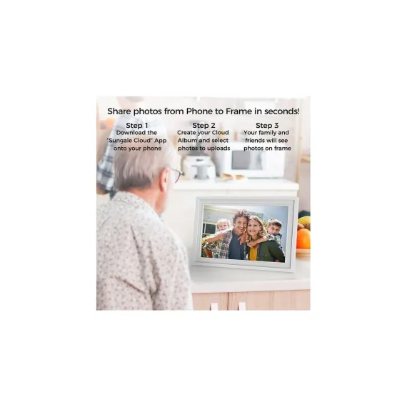 A Cloud Digital Frame is a great gift for sharing memories with family, friends and especially parents and grandparents. The elegant design will look great anywhere in the home and with auto-rotation, you can have photos displayed horizontal or vertical. Sharing photos is simple, fun and easy - just snap photos on your phone, and then use the APP (available on iOS and Android) to share to the Cloud Frame fast, simple and anytime no matter where you are. Get the whole family to participate in sharing photos by inviting them to the cloud frame account and letting them create albums and share their pictures to the photo frame. You also have full control of your slideshow settings, transitions as well as special features like weather and time displays. Besides using your phone, it also works with a computer browser to send photos as well. Additionally, there are non-WiFi options so you can view photos using the 16GB storage, SD/SDHC card slot or USB Drive. Setting up and connecting your cloud frame to your WiFi is quick and easy using the touch screen and registration can be completed via Frame, APP or website within minutes. If you want the best way to view and share photos for yourself, friends or family, the cloud frame is the product you have been looking for.