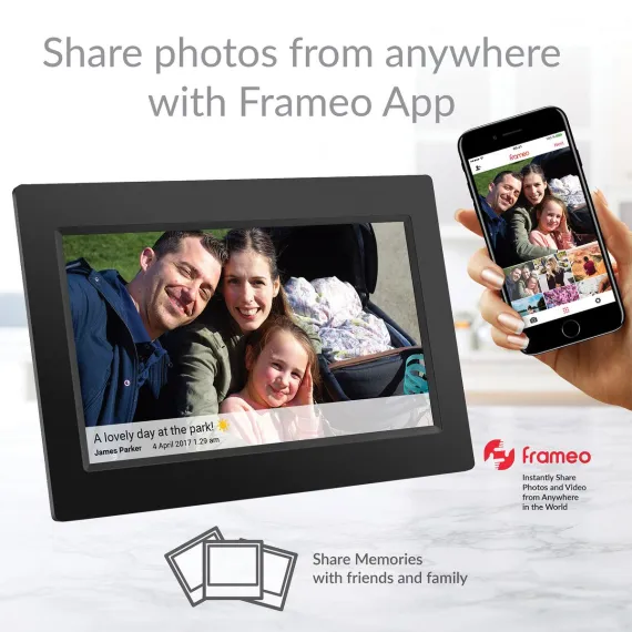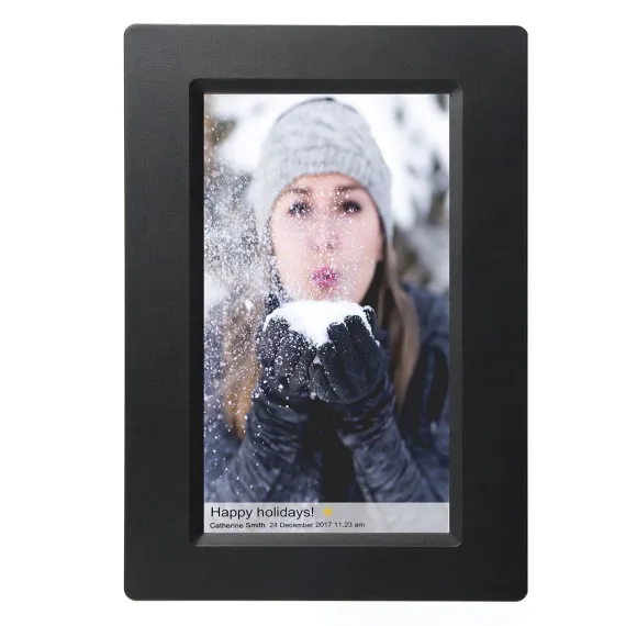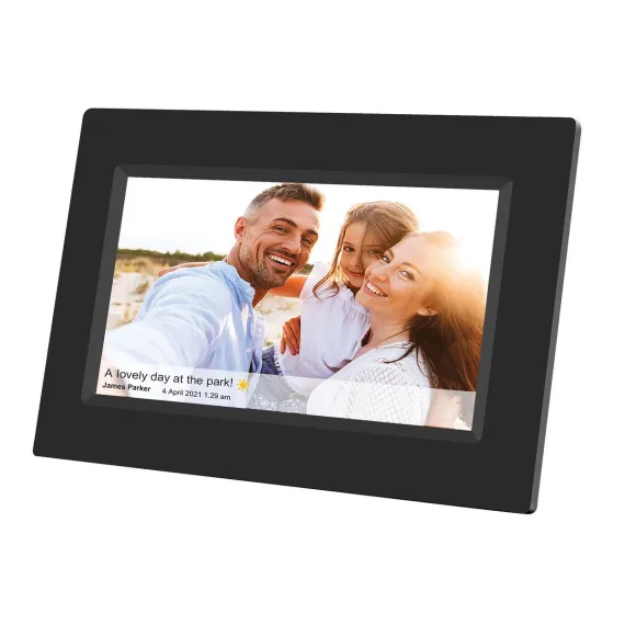 The Supersonic 10.1-In. Smart Photo Frame is the ideal way to showcase your cherished memories with a modern twist. Featuring a vibrant IPS touch screen display, this frame brings your photos to life with stunning clarity and vibrant colors. With 16 GB of built-in flash memory, you can store a large collection of your favorite moments. Easily import your photos from a microSD Card or USB 2.0, supporting a maximum capacity of 32 GB. The 1280 x 800 resolution ensures every detail is crisp and clear. Stay connected with the integrated Wi-Fi® 2.4 GHz, enabling convenient control via the user-friendly Frameo app. The app allows you to send 1 or multiple photos to the frame, anytime and from anywhere. Personalize your photos by adding captions or messages, making each moment even more special. With multi-language on-screen menus and auto-rotation, you can use the frame in portrait or landscape view effortlessly. The Photo Frame comes with a built-in stand and is wall-mountable, giving you the flexibility to display it anywhere you desire. Additionally, the frame includes a sleep mode time period, allowing you to conserve power when not in use. Easily manage your photo collection by showing, hiding, or deleting photos directly from the frame. Capture memories, share joy, and relive your favorite moments with the 10.1-In. Smart Photo Frame. Bring your photos to life like never before.