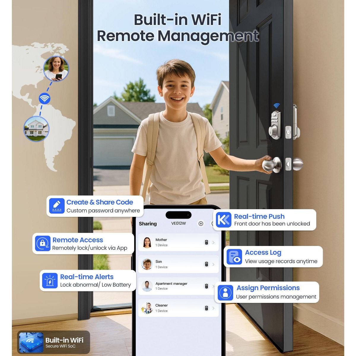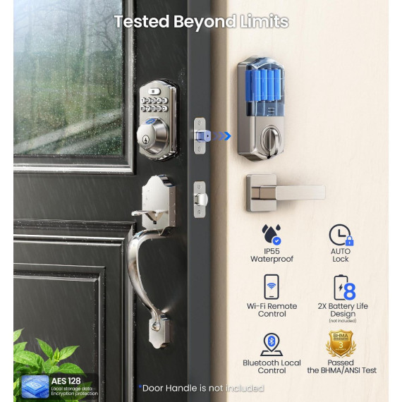 Upgrade your home security with this state - of - the - art smart lock. It features built - in WiFi, eliminating the need for a hub and allowing you to unlock your door from anywhere. With six smart access methods including app, fingerprint, PIN code, voice control, auto - lock, and physical key, you have ultimate flexibility and security. The lock offers real - time remote control through an app, where you can check the status, get alerts, and review access logs. All data is stored locally for privacy. It meets BHMA/ANSI standards and has IP55 water resistance, ensuring durability. Installation is a breeze; you can do it yourself in minutes with just a screwdriver. Compatible with popular smart home ecosystems, it's the perfect addition to your modern home, providing convenience and peace of mind.