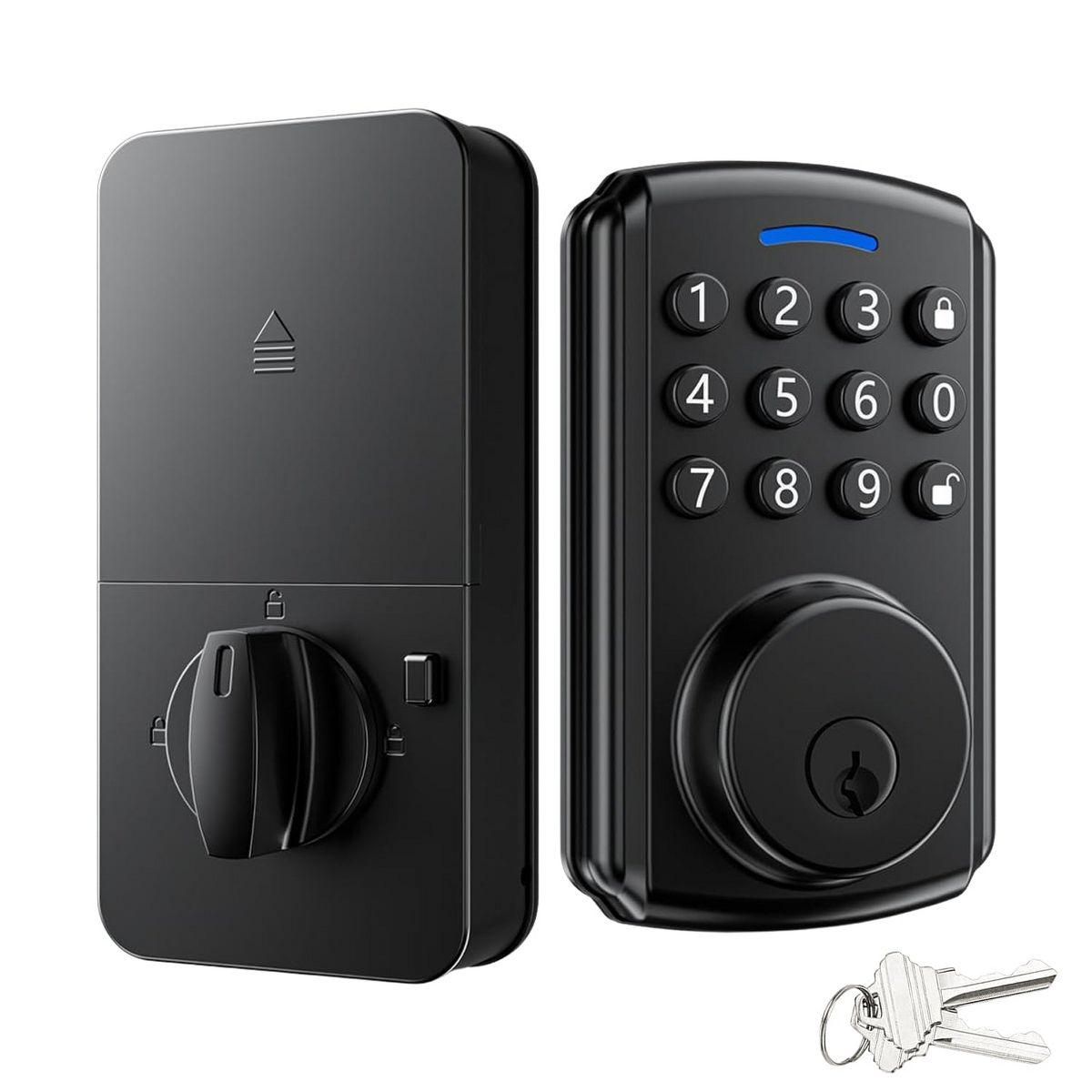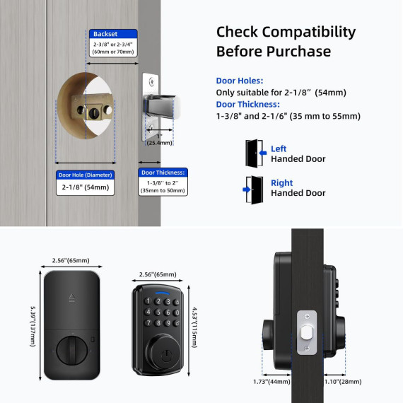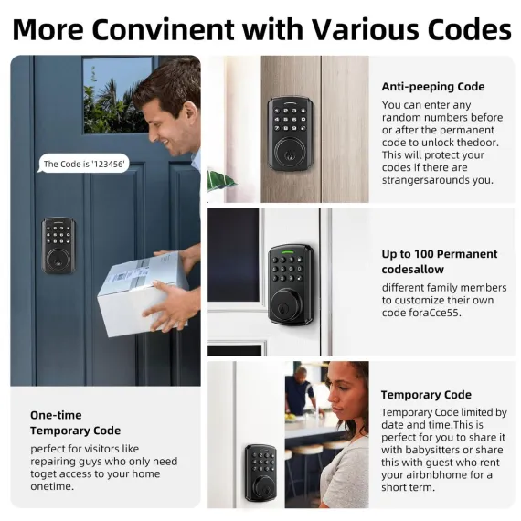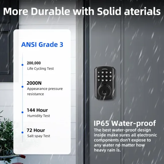 Upgrade your front door security with this smart deadbolt lock. It offers keyless entry and built - in Wi - Fi for app remote control, eliminating the need for a bridge. With advanced Wi - Fi connectivity, you can control and monitor the lock from your phone and even use voice control via Alexa. It connects directly to your router, allowing you to share one - time access with guests and set up to 100 unique passwords. For security, it comes with auto - lock, real - time notifications, and anti - peeping technology. The lock is highly durable, with an IP65 waterproof rating and can operate in extreme temperatures from - 22°F to 158°F, with a service life of 200,000 times. Installation is a breeze, taking only 15 minutes without drilling and is compatible with most standard doors. The package includes all necessary accessories, making it a perfect choice for modern homes.