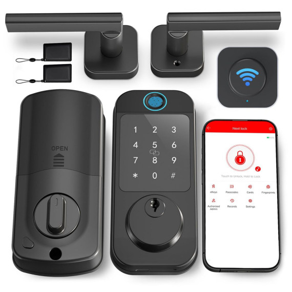 Itopfox Keyless Door Lock with Handle Set - WiFi Fingerprint Smart Locks for Front Door, App Remote Control, Digital Bluetooth Keypad Deadbolt Set