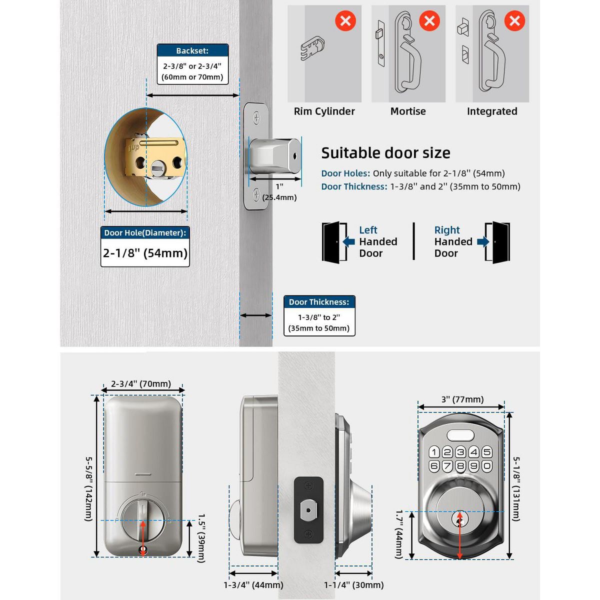 Itopfox Keyless Entry Door Lock with Keypad - Smart Deadbolt Lock for Front Door with Keys - Auto Lock - Easy Installation - Satin Nickel